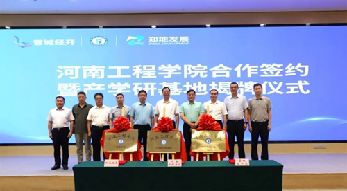 會上,河南工程學(xué)院、管城經(jīng)濟(jì)技術(shù)開發(fā)區(qū)管理委員會、河南鄭地產(chǎn)城融合建設(shè)發(fā)展有限公司共同簽署產(chǎn)學(xué)研合作協(xié)議,并現(xiàn)場為河南工程學(xué)院校外實(shí)習(xí)基地、產(chǎn)學(xué)研合作基地、就業(yè)基地揭牌。